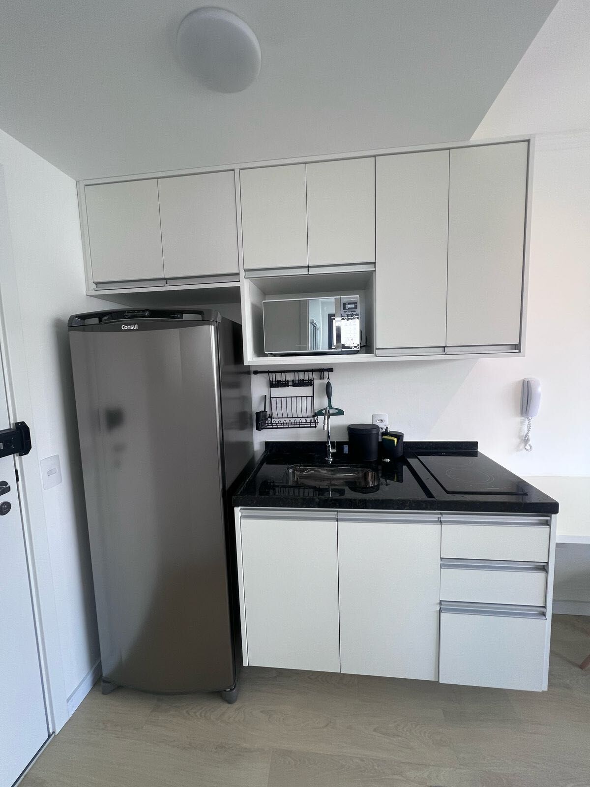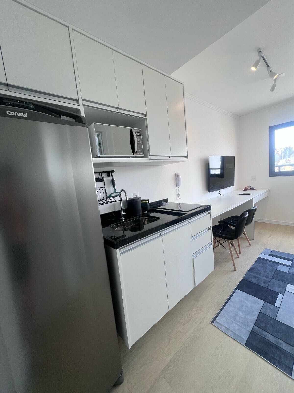 Equipado com academia, aquecimento central, ar condicionado e fechadura digital, este studio é perfeito para quem busca praticidade e modernidade. Além disso, você poderá desfrutar de momentos relaxantes na piscina ou apreciar a vista na sacada do apartamento.